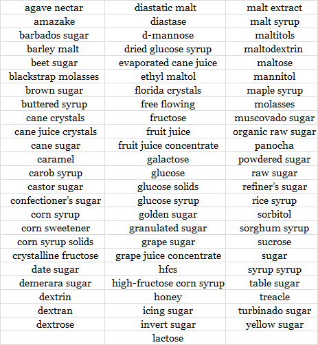 Sugar, starch, salt and corn by any other name is still sugar, starch, salt and corn!